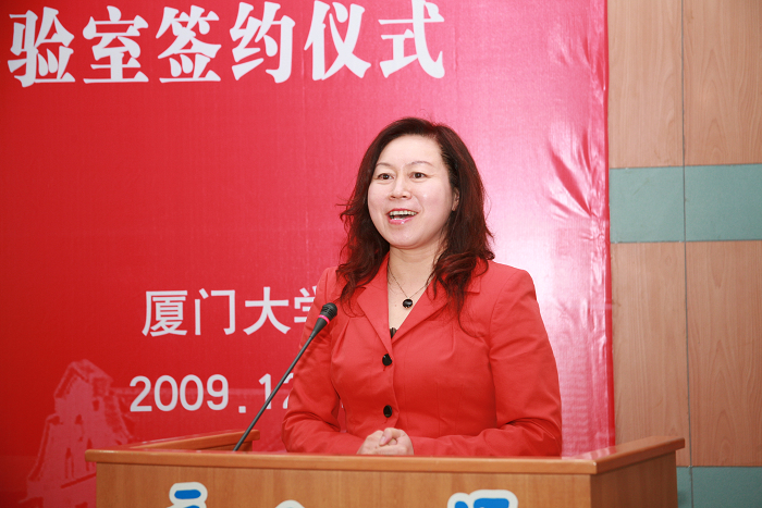 儀式上,新大陸科技集團王晶總裁發(fā)表了熱情洋溢的演說,她首先對廈大聘請虞華年、