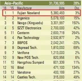 全球第三方權威數據研究機構尼爾森日前發布《2016年全球POS供應商排行》報告,新大陸支付公司穩居亞太第一、全球第三;mPOS出貨量居全球第一; 此舉彰顯了公司的行業地位與品牌實力。