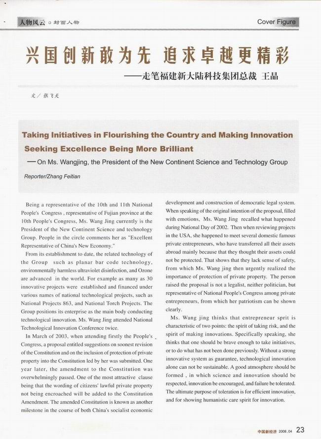 【中國(guó)新經(jīng)濟(jì)】興國(guó)創(chuàng)新敢為先 追求卓越更精彩——走筆福建新大陸科技集團(tuán)總裁 王晶