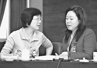 和王晶代表就各自提出的議案和建議進(jìn)行熱烈的交流。