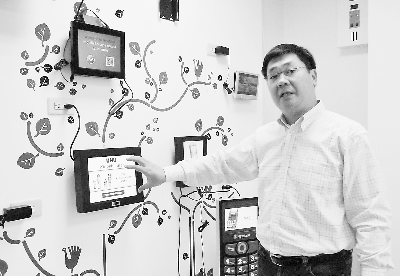 臺灣新大陸資訊科技公司總經(jīng)理閻蔚中介紹新產(chǎn)品。駐臺記者 陳柱勝 攝